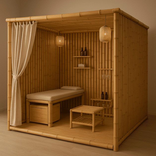 La cabine en bambou devient le vestiaire de vos clients. Offrir un vestiaire pratique et...