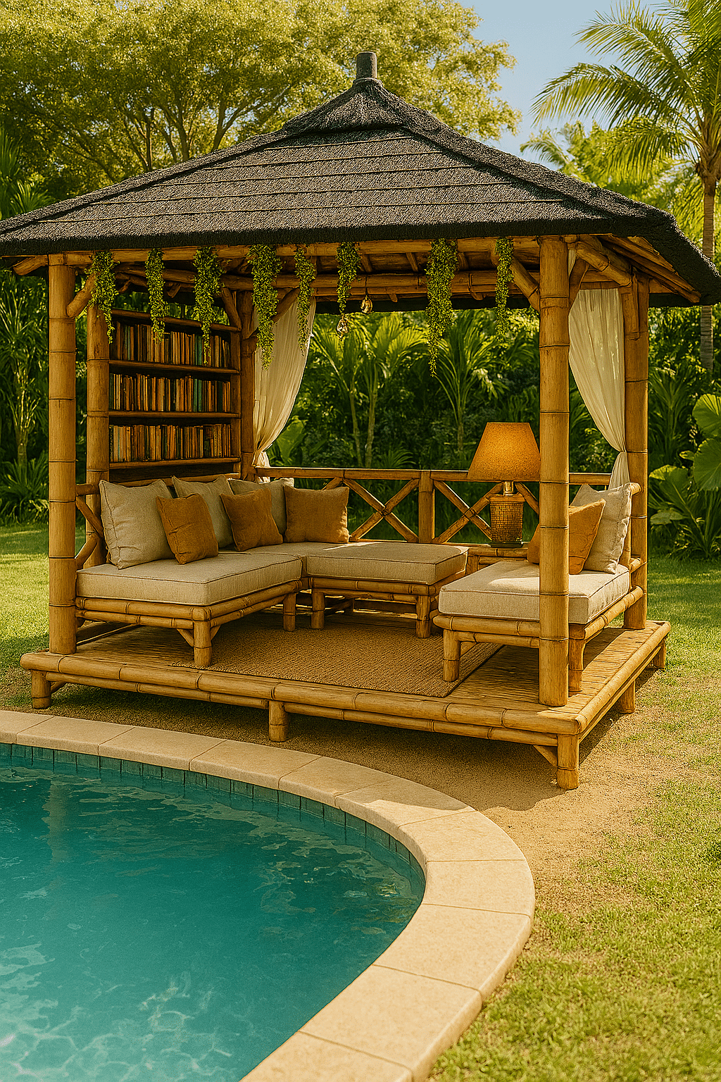 La paillote-bibliothèque allie charme, fonctionnalité et bien-être.
