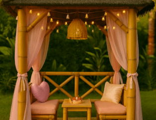 Que ce soit pour un restaurant, un spa ou un événement en plein air, la cabine en bambou apporte une solution élégante.